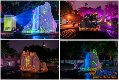 而在白云石灯光秀中,3台VIVITEK DU8090Z与2枚标准镜头和1枚长焦镜头配合,结合石头造型进行光影成像,实现了360度影像覆盖,观众无论从哪个角度观看,都能感受艳丽的影像及立体效果,通过石上光影,一览四秀变幻的白云山景像。