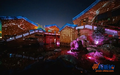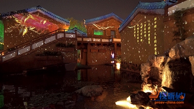 在Vivitek(丽讯)高亮度激光工程投影机的映射下,园内一座座仿宋建筑群成为了天然幕布,灵动还原千年前大宋都城的辉煌盛景。