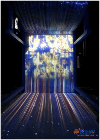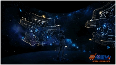 “五星出东方利中国”锦护膊,藏于新疆维吾尔自治区博物馆,为东汉织锦,制作工艺复杂,是古代劳动人民最高智慧的结晶。《织天机》展项通过8台Vivitek (丽讯) RU70983工程投影机,还原恢弘的巨型织机装置,伴随着梦幻的星河流动,织就出五星出东方的祥瑞图案,以绝妙的传统织锦工艺,衬托中华历史悠久的图腾文化。