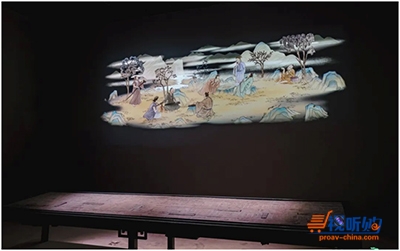 《山林逸士》以“竹林七贤”为故事原型,通过2台 RU70983工程投影机所呈现的影像,与294块古墓砖拼嵌而成的竹林七贤与荣启期砖画构造而成。