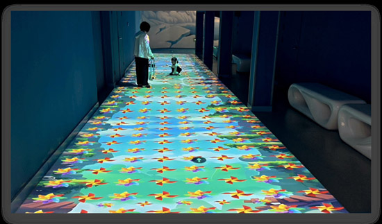 在长15米、宽3米的地面区域,多台奥图码激光投影机与先进扫描雷达系统结合,创造出几乎零延迟的互动体验。