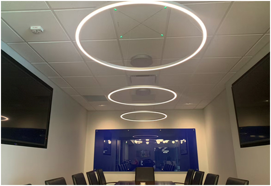 TCC 2被整齐地安装在MTSU教室的天花板上,通过通用线缆连接到数字信号处理器,再连接到计算机USB端口,在视讯平台中即可显示为音频拾取选项。