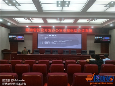 项目简介:湖南省扶贫开发办公室会议室前期已采用我公司一系列本地会议设备,涉及到有数字会议发言系统、高清信号切换系统、高清录播系统、数字智能扩声系统、智能中央控制系统等。本次升级主要针对省与下级市州单位视频会议系统的搭建,考虑到会议室部分的前期已使用我公司产品,效果得到使用方认可,且稳定性与兼容性方面更佳,经过现场考察,项目技术交流,新增部分设备均再次选用由广州市隆浩智能科技有限公司负责。