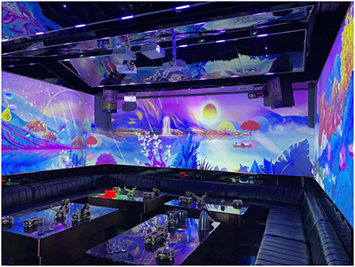 走进这间包房,除了扑面而来的包裹感,更令人欣喜的是,当你纵情高歌时,四周的视频画面将会“随你而动”,无论是浩瀚星空、落日余晖,还是蓝色大海、无边草原……千变万化的主题内容任你选择。绚丽画面与KTV的柔美灯光、酷炫音乐完美交融,令你在虚拟与现实的环境中畅享K歌新体验。特别值得一提的是,CS3300WL拥有的高色域认证及内置的六轴色彩校正功能,保证了色彩的精准还原及色彩输出的一致性,才得以令包房呈现如此鲜艳靓丽的画面。