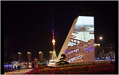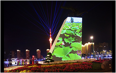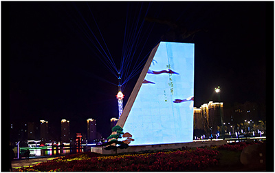 位于西侧公园主入口广场的昭阳大将军雕塑碑是公园的主要景观,也是兴化的标志性建筑。驾马奋蹄、持弓劲射,以往,市民只能通过静态的雕塑形象感受到昭阳将军的英勇之姿;如今,采用1台NEC哈勃系列液晶激光投影机PA804UL(8000流明、WUXGA)打造的将军碑投影秀不仅让将军“力拔山兮气盖世”的骑射雄姿变得鲜活起来,更通过投影技术,让科技和人文相融合,再现兴化发展的古往今来。