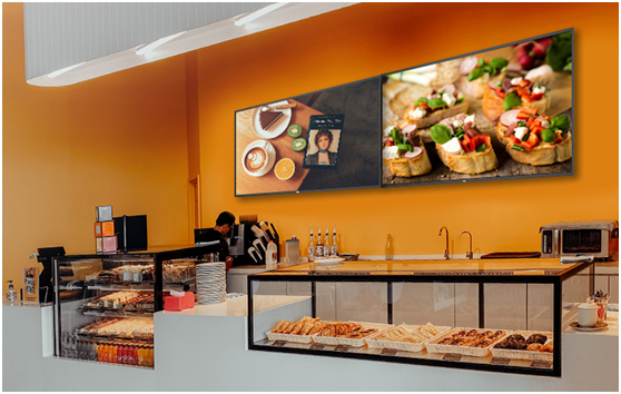 遇到客流量高峰时期,若让消费者排队到前台位置再看餐点餐,未免过于浪费时间,也不免会给消费者带来长时间等待的不佳体验。借助AOC数字标牌,则可分屏呈现餐饮菜单,让正在排队等候点餐的消费者目之所及便能锁定自己的“美食目标”,排到自己时便可快速下单,不仅提升了华莱士加盟店的点餐效率,还为消费者带来良好的点餐体验。