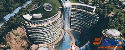 “深坑酒店”即上海佘山世茂深坑酒店,酒店深入地下88米,是目前世界海拔最低的酒店。据说在酒店房间能就能看到飞流直下的瀑布、空中花园、岩壁景观和坑底积水。如果住在二层的水底客房,还可以隔着玻璃墙欣赏水族馆,个性的空间设计,充分打造视觉多样性。