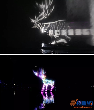 当鹿出入画面时,自然的形成一种变化莫测、腾空穿越的感觉,再配以现场灯光音响,场面更显宏大,产生一种虚无缥缈和梦幻感和通透立体的景深感。