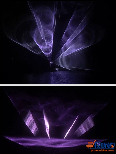 所有震撼演出的背后都需要技术团队的鼎力配合,在“ECHO回响”水幕部分的解决方案设计中,安恒集团的技术团队选用了Coolux媒体播放系统。Coolux重新定义了实时编辑和播放控制。该软件可以通过网络来同步和远程控制所有媒体播放产品。它的同步播放功能可以基于网络的自适应帧同步使多台投影机同步运行,同时还应用了它荣获专利的梯形修正算法,能够更加精准、即时地修正偏角失真。