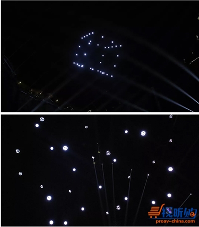 第三篇聆听万物回响,42架无人机闪光起航,配合音乐的节奏在空中编织出生命的舞蹈,一只来自宇宙深处的眼睛在夜空中与观众的眼睛遥遥相对,提醒我们倾听来自自己内心的回响。