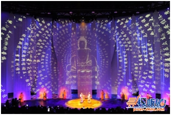 “中国·新兴禅域小镇”是广东省“十二五规划”重点项目,该项目总占地面积1800亩,总投资20亿元,其中的核心项目就是《禅宗圣域·六祖惠能》实景演出,它是全球首部禅宗文化情景体验大型实景音画大典,也是广东省第一台实景演出。演出的内容以六祖慧能一生的故事为主线,设计了“禅音墙”“时空隧道”“佛手”“菩提树”“莲花剧场”等几个演出场地,赢康为其中的时空隧道、大型屏风、佛手和莲花剧场做了异形投影、纱幕投影、表演控制和集成等工作,并承担了强电、弱电的施工工作。