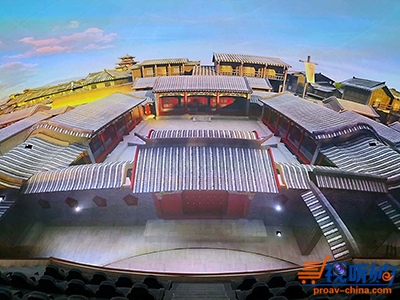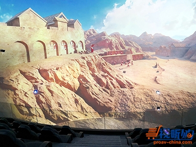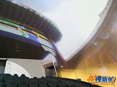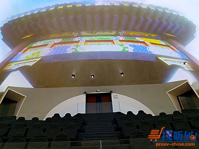 陕北民歌博物馆在传统球幕的基础上,将左右两侧和观众台最前侧也扩充进来,打造出超出普通球幕馆的超强沉浸感,进一步增加包裹感,让观看者能有更真实的临场感和互动感。虽然对于观众来说将是一项新奇的体验,但是对于投影工作来说却充满了挑战。