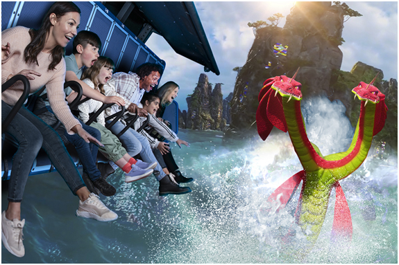 “飞狮之旅”是英国首个飞行影院,也是乐园价值2000万英镑(约1亿7千万人民币)的奇幻景区“Mythica:神秘生物世界”的主要游乐设施。它的亮点是用685,530块乐高积木搭成的狮子像,这是来自儿童的创意。剧场本身高25米,游客会从飞狮的翅膀下被传送到Mythica表演现场,双头海德拉、冰火鸟等乐高生物都将在此变得活灵活现。游客乘坐在能够左右30度、上下23度摇摆的悬吊座椅上,沉浸在被投影在20米高的凹面屏幕的画面中,体验这场激动人心的冒险之旅。该设施由智崴集团(Brogent Technologies)打造。