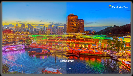 1、 PureContrast 扩展了我们先进的对比度算法技术,优化了更亮和更暗的场景,确保 SDR 和 HDR 内容具有更深的黑色和更明亮的亮度,从而提供具有出色深度和细节的有影响力的视觉效果;