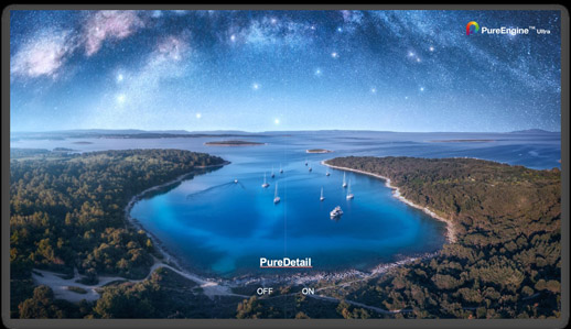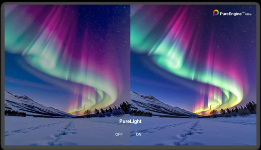 3、 PureLight 可增强高光的亮度和阴影区域的对比度,从而以更高的亮度和更精细的色调细节显示图像。这项先进的技术创造了更加身临其境的观看体验,使图像看起来更加动态和引人入胜。
