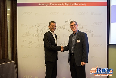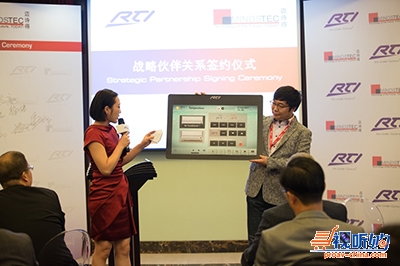 Ed和Wahab先生共同签署了合作协议,承诺继续互相配合并全力支持对方的业务。除了简单而隆重的签约仪式,RTI的国际业务总监Gregory Revell和主持人程橙在现场做产品示范,让来宾有机会进一步了解RTI中控系统的操作和实际应用,大开眼界。