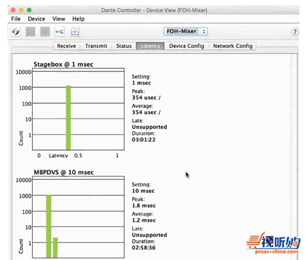 DANTE延迟百分百一致,同时也在每个设备中可调,DANTE提供工具允许你设备系统延迟的最佳值。