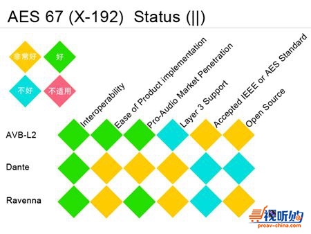 对比COBRONET、AVB-L2、AVB-L3三种协议,DANTE协议应用在音频上优势显而易见。