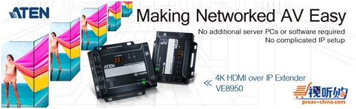 “数字标牌已经无处不在,而市场对通过IP来达到有效管理的需求日渐增长。作为在AV和IT领域拥有丰富经验的服务商,我们非常高兴能面向专业影音市场推出VE8900/VE8950 4K over IP影音信号延长器这两款产品。VE8900/VE8950能满足1080p/4K高分辨率的要求,同时提供便捷的IP网络化管理,这款产品能帮助我们的合作伙伴建立起数字标牌产业。“ATEN宏正国际总经理陈凯文先生评论道。