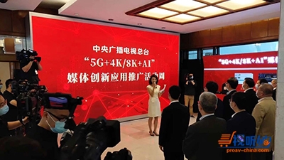 在启动仪式上,央视通过8K显示屏与5G网络传输,多地连线,直播北京前门大栅栏、北京欢乐谷、北京顺义祥云小镇等商圈繁华景象,以及展示康辉、撒贝宁、朱广权、尼格买提与春妮联合直播带货的视频。