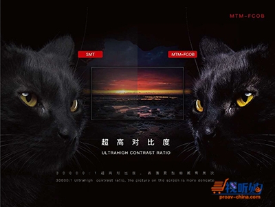 全倒装8K MTM-FCOB显示屏在设计上化繁为简,传热效率更高,散热效果明显,避免了因高温导致各种不良影响,对提高显示屏器件寿命与稳定性具有重要作用。