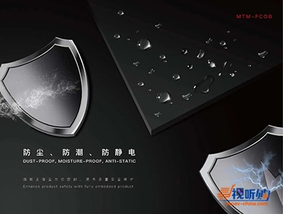 MTM-FCOB产品采用面板正面全方位密封,拥有多重安全保护,并利用环氧树脂封装灯体表面,正面防护等级更高。