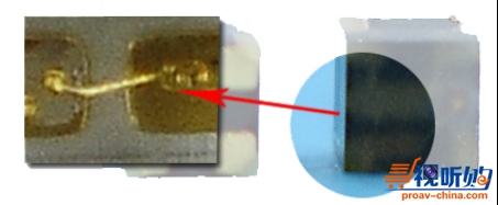 键合相对没有金线牢靠,导致出光相对金线有一定的波动,波长可变范围大,光衰减率较大,造成屏幕花屏、色块、偏色等现象。 |
