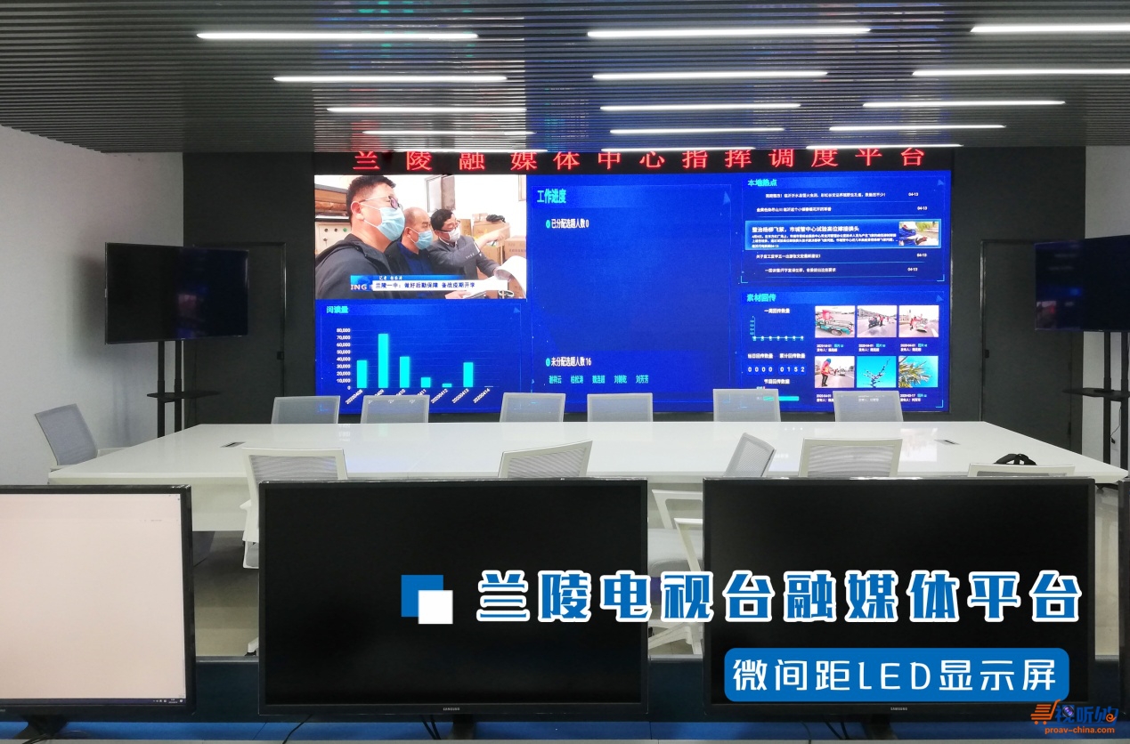 屏幕安装在兰陵电视台融媒体中心指挥调度室,清晰呈现出所需要的画面和数据。Voury卓华小间距LED显示屏灯珠采用专用材质高标准加工工艺,提高了灯珠的耐温性,增强了LED芯片可靠性,色温一致性好,从而使LED显示屏光衰更小,保证了屏幕无花屏、色块、瞎点、偏色,整屏失控率小于百万分之一。