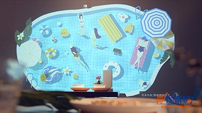 在场景库中选择适合空间氛围的动态素材,开启DIY之旅并分发至投影机。