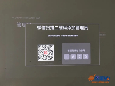 a) 投影机操作:在“服务中心”中,找到“管理员管理”-“添加管理员”查看动态绑定码