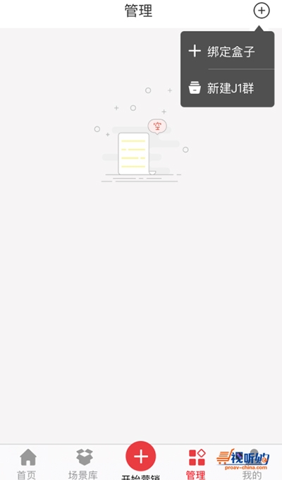 b) 手机操作:在“管理”页面点击右上角加号–“绑定盒子”-“输入绑定动态码”