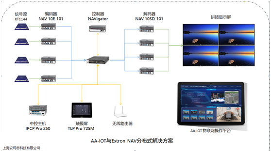 安玛思拥有近二十年的音视频行业经验。此次合作中,其自主开发的 AA-IOT 智能物联网可视化平台将与Extron的 NAV® 分布式解决方案做深度连接,以实现智能化的管理与操作,以及对信号源、编解码器状态的实时监测,最终确保卓越的用户体验,并满足用户多元化的应用需求。