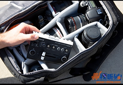 V-02HD只有16cm宽,独自奔波在各个活动现场的摄像师可以轻松地把它放在设备箱或相机包里,甚至可以放到衣服口袋里!