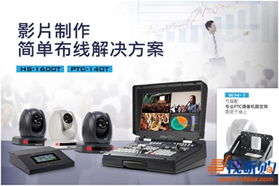 洋铭推出的全新极简布线现场制作解决方案基于两个新品——HS-1600T 4通道 HDBaseT 便携式移动录播演室和 PTC-140T HDBaseT 云台摄像机。两者采用 HDBaseT 技术,让现场制作解决方案变得更为方便简单,特别是在布线环节上。