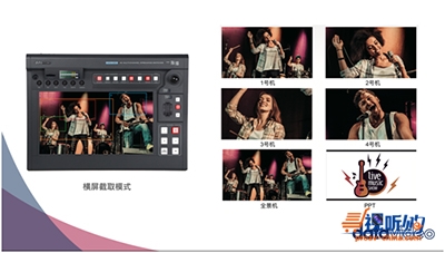 这套直播带货系统的直播画面切换使用的是洋铭直播一体机 —— “一指播”KMU-200。仅仅需要这样一台设备,你就可以实现全高清直播时候的录制、推流,切换工作。仅需一根手指,解决所有的特写画面,全景画面,横屏画面和竖屏画面的任意选择和切换。触摸监看屏,可用手势指定画面切换,也可以使用截取快捷键切换,更有一键切换横竖屏截取功能。洋铭“一指播”KMU-200自带直播编码器,可对接京东直播等平台做横竖屏直播。