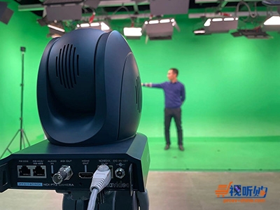 将洋铭TVS-2800接入局域网,便可在摄像机来源处直接选择PTC-140 NDI摄像机,并用作抠像叠加背景,进行课程录制,整个过程方便快捷,同样适用一根网线完成供电、控制及信号传输,帮助录课更加轻松、出色。