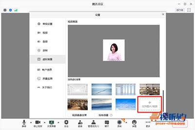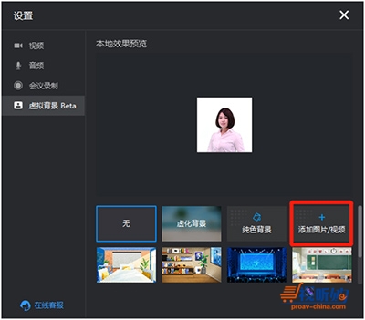 第四步:点击“支持图片/视频”,选择虚拟背景,选择好后,设定完成!