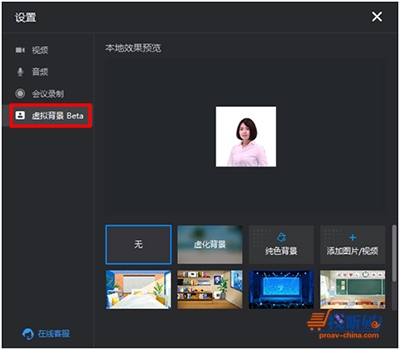 温馨提示:虚拟背景可以支持jpg.png.bmp.jpeg.mp4.mov的图片和视频