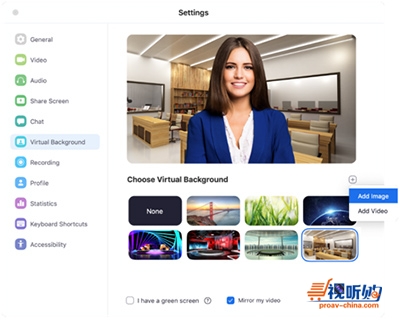 第四步:点击 “添加图片”(Add Image),选择虚拟背景,完成设定!