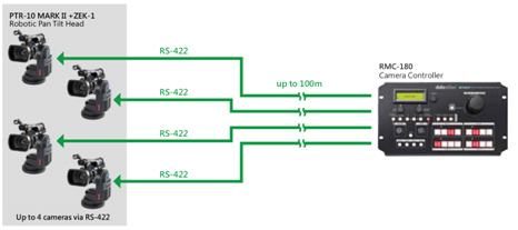 仔细观察系统图,会发现图中PTR-10 MARKII后面标注了一个名为ZEK-1的特殊配件,它的用途是什么呢?ZEK-1是洋铭最新独创的电动遥控云台变焦系统,通过将 ZEK-1 齿轮与摄像机变焦环接触(齿轮和变焦环齿无需咬合太紧,这样变焦会更顺畅),ZEK-1 可以读取摄像机变焦环的旋转变化,可以读取云台转动的变焦位置,可设定,储存变焦位置,让控制器随时调用预置的变焦数据。
