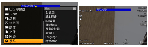 小编对摄像机远程菜单控制设定也进行了测试,发现通过PTR-10 MARK II的菜单,可以控制摄像机菜单及一些输出参数信息,在监看屏幕上可以看到摄像机信息。