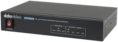 Datavideo DAC-45支持VGA、HDMI 和SDI 多种格式的上/下/交叉转换为4K HDMI或1080P HDMI、SDI信号,且有出色的视频质量与清晰度。 这是一种颇具性价比的信号转换方式,使用单一转换器即可胜任多种格式的信号转换。Datavideo DAC-45 不仅可以接收4K HDMI 输入/输出,也可以将4K HDMI 输入转换为3G-SDI 1080p 格式输出,并通过SDI线缆可传输信号长达100米,适合于体育场馆或音乐会场地等大型活动现场的信号远程传输。