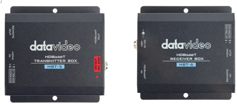 第二种 使用HDBaseT 信号转换器: Datavideo HBT-5 (视音频传输器)与 HBT-6(视音频接收器)