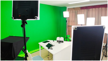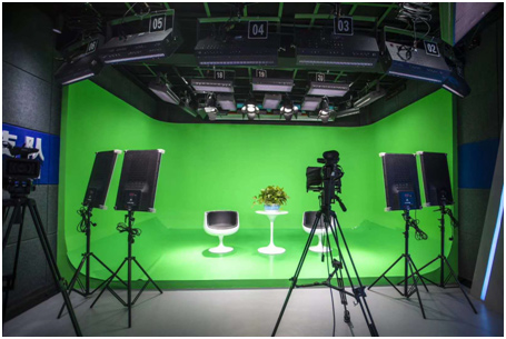 通常一个高性价比的专业虚拟演播室我们会分为三部分:虚拟抠像绿箱、灯光、设备操作区域。