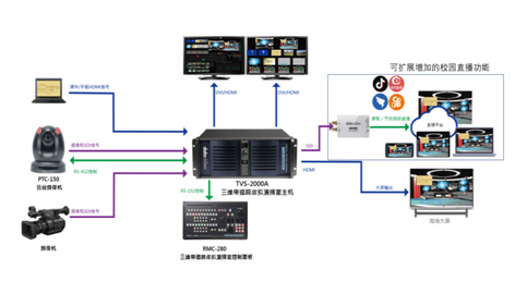 高质量高效的虚拟设备以及适用的摄像机选择是专业的高性价比虚拟演播室创建的关键所在。三维虚拟设备,市面上品种繁多,专业且很容易学会使用,操作无障碍,性价比较好的产品无疑应该是首选。所谓性价比好,首先是价格要实惠,其次功能在满足现有需求的情况下还要有易延展性。如洋铭的TVS-2000A三维虚拟演播室,它就可以在满足基本的虚拟节目制作的时候,用普通虚拟的价格实现理想种的三维效果,同时它还具有可选择的跟踪功能,如果想要实现直播,加一个简单的洋铭直播采集卡就可以直接延展出直播。