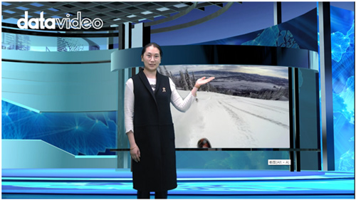 摄像机可根据虚拟主机设备的匹配接口以及相应的预算选择各大品牌的性价比高的摄像机即可。如果选择Datavideo TVS-2000A,搭配Datavideo的PTC-150云台摄像机可以实现自由选择追踪或不追踪两种拍摄模式。对于站播类型的节目制作,需要的场景且需要景随人动的情况下,追踪功能便是必备功能。不同的拍摄模式,都可以根据所需要的节目效果自由的选择。