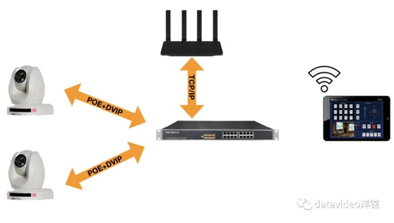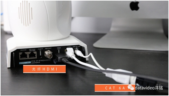 前端的云台摄像机的图像信号传输可以使用光纤HDMI线进行传输,所以我们在做现场工程布线的时候,每个机位只需布一根CAT-6A网线和一根光纤线,通过POE交换机实现远程供电控制传输系统。