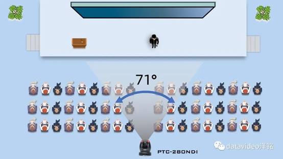 特别是当我们遇到宽广型的会议厅时,使用PTC-280 NDI 71°大广角来进行会场的拍摄覆盖,一次抓取整个会议空间画面,会议现场也无需安排工作人员,使用远程控制的方式,既安全、方便且节省。