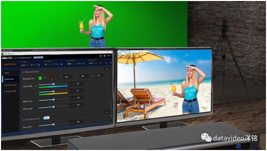 硬件抠像跟软件抠像的首要区别便是通电即插即用,无需进行繁琐的设置操作。只要环境的布置和光线在一个合理的条件下,DVK-400均可一键自动抠像,无需像软件抠像一样反复调整。