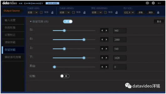 与保留屏蔽相对应的那就是清除屏蔽功能。DVK-400的清除屏蔽功能功能主要又运用到哪里呢?当我们的演播室空间没有足够大,我们的抠像区域不可避免的会有某些物体进入到抠像区域,比如灯柱或者是其他的无法避开的物体,此时就需要色键器有清除这些物体的功能。DVK-400它不需要像软件抠像那样一点一点的去清除擦除不需要的物体,而只需要框选物体的轮廓进行一键清除即可。